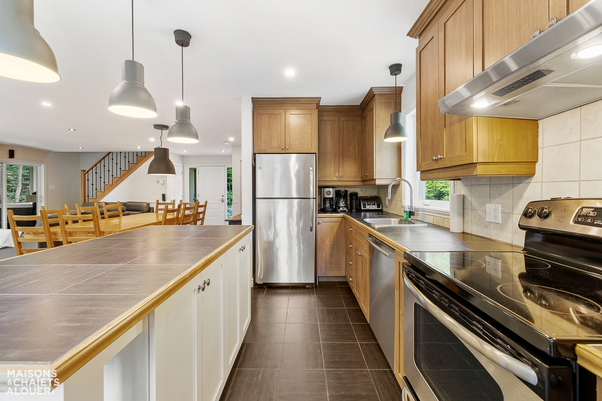 Immerse yourself in nature at our bright and welcoming chalet, perfect for gatherings of up to 14 people. With its 5 bedrooms and 2 bathrooms, everyone will find their space to relax. Create warm memories around the wood-burning fireplace during friendly evenings. In the basement, two bunk beds and a foosball table ensure unforgettable entertainment. Outside, a BBQ and a covered spa invite you to total relaxation, no matter the weather.